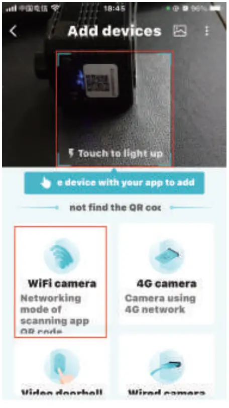 3) Put the camera near the router, and your phone to camera within 10cm4) If the QR code network configuration is unsuccessful. try to use AP network configuration. After connecting to the WiFi hotspot sent by the camera and returning to the APP, the phone can automatically added.