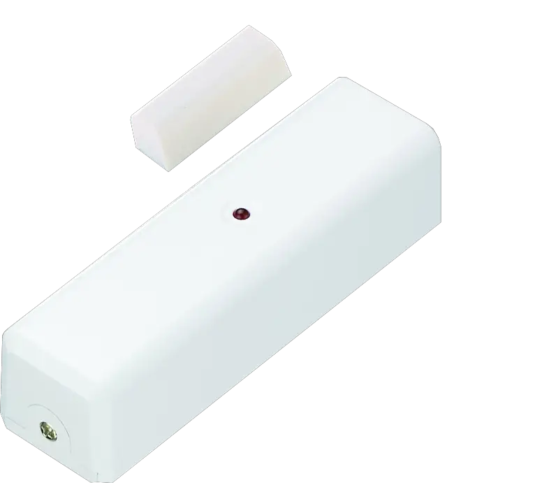 This sensor offers information whether a door or window is open or closed. The product consists of a magnetic element and the main unit. One of the parts is mounted on the moving part of the window or of the door. The other part is placed on the frame. The installation can be done with screws or double-sided tape. The 2102 is a battery-powered device, which is in sleeping mode unless an action is detected. After a programmable sleeping time the device wakes up and sends a status information. After this the unit goes back to sleeping modus. Batteries can be changed without unscrewing the device from the door or frame. The units send information to a controller or any other associated Z-Wave device.