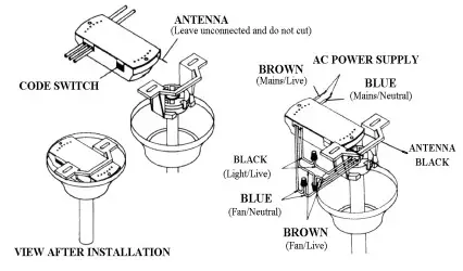 - The supply to the remote control receiver should be connected through a mains switch, i.e. existing wall switch.
