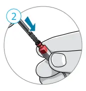 - Insert the empty end of the application stick straight into the used wax guard in the receiver.
