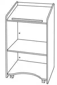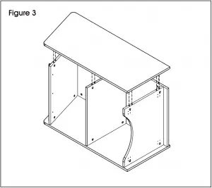 - Insert camlock pins (A) and dowels (C) into the remaining side panel. Place this side panel on top of the assembled portion of lectern. Tighten camlocks (B) using a Phillips head screwdriver. (See Figure 4)