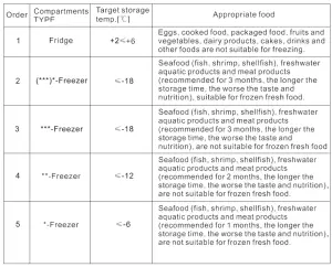 When refrigerating food, please be careful not to contact the surface of the inner box directly. When frozen food, in order to prevent moisture loss, prevent the odor, should separate the different food sealed storage, and can only use non-toxic, tasteless, impermeable, waterproof sealing material. Hot food should be cooled to room temperature first, then put into the freezer, otherwise it will affect the storage status of other foods and increase the power consumption.