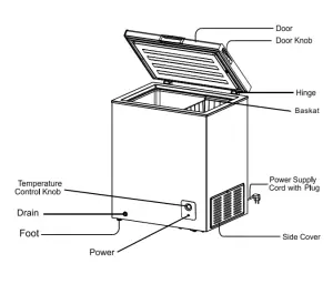 - To adjust the temperature inside the freezer compartment, adjust the temperature control dial on front-bottom side of the chest freezer. Normally use chest freezer with temperature MID.