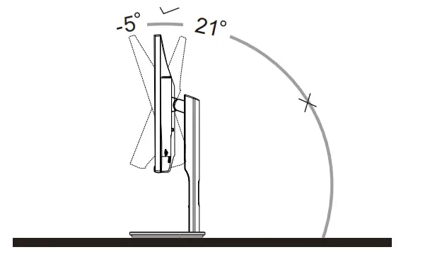 For optimal viewing it is recommended to look at the full face of the monitor, then adjust the monitor’s angle to your own preference. Hold the stand so you will not topple the monitor when you change the monitor’s angle. You are able to adjust the monitor as below: