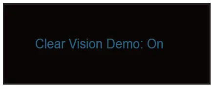 - Press and hold “ ” button for 5 seconds to activate the Clear Vision Demo, and a message of “Clear Vision Demo: on” will be display on the screen for a duration of 5 seconds. Press Menu or Exit button, the message will disappear. Press and hold “ ” button for 5 seconds again, Clear Vision Demo will be off.Clear Vision function provides the best image viewing experience by converting low resolution and blurry images into clear and vivid images.