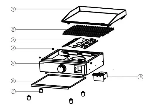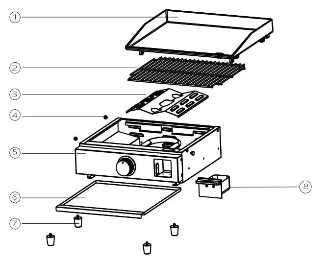 - Take out the four rubber feet from the plastic bag which is included with the Outdoor Griddle. Remove the griddle top from the griddle body.