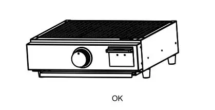 - Make sure the appliance must be on .a level, stable noncombustible surface in an area clear of combustible material during cooking. An asphalt surface (blacktop) can not be accepted for this purpose.