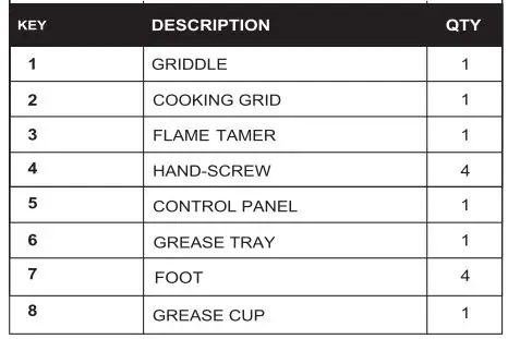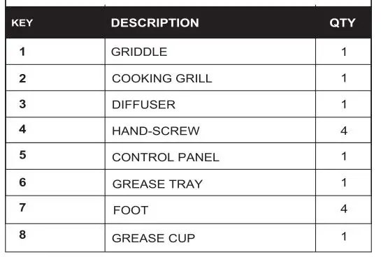 - Using alcohol, prescription or non-prescription drugs may damage the consumers ability to properly assemble or safely operate the griddle
