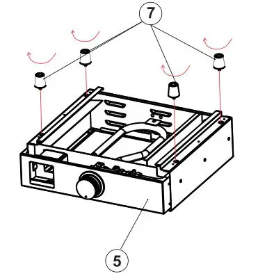 - Put the griddle upside down on a soft surface. Put the four rubber feet to the bottom of the griddle as shown below.