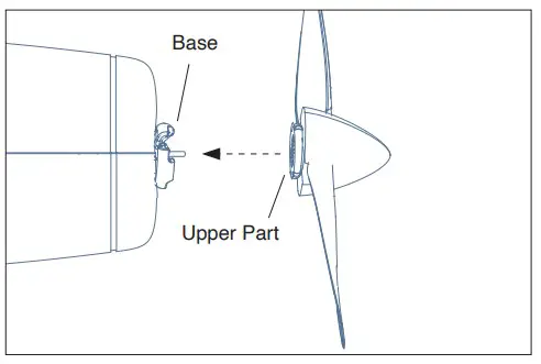 propeller back to the base, insert the upper part centerly through the motor shaft, and hearing a “click” sound to ensure it is secured.