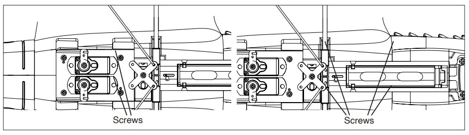 If the elevator is angled off to the upper or lower position, adjust the push rod by its arc-shaped section slightly, making sure the elevator is properly centered.