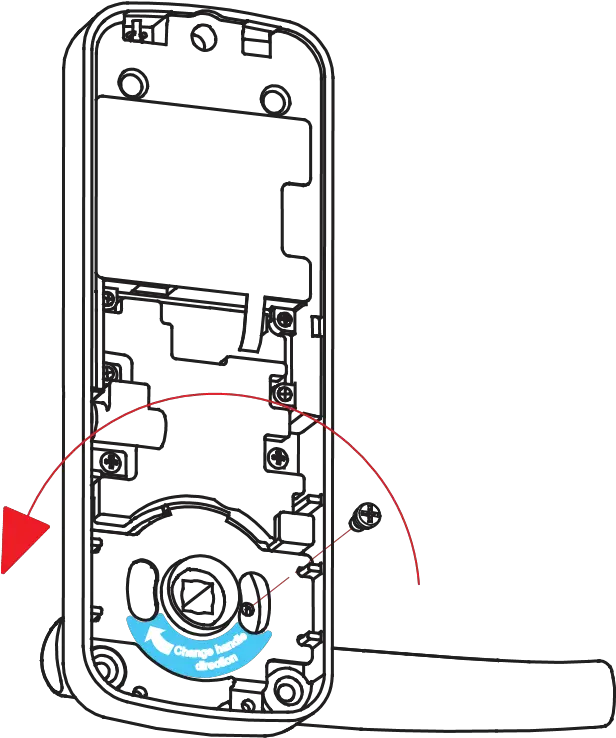 3.6 Remove the screw by turning counterclockwise and rotate the handle 180° in the direction of the arrow as shown.