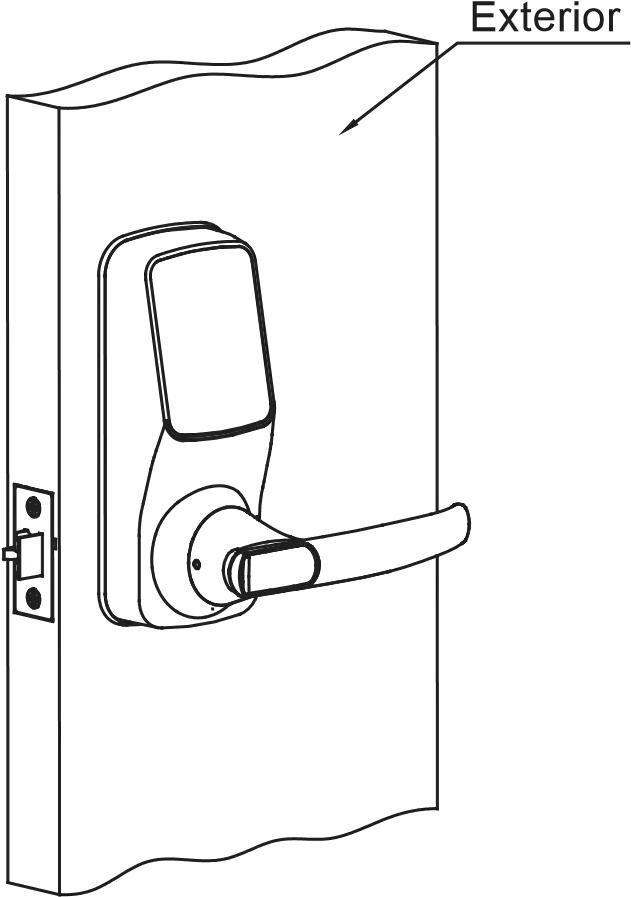 5.2 Install the exterior lock as shown to the left by aligning the lock straight and passing the cable and attached rods through the lockset.