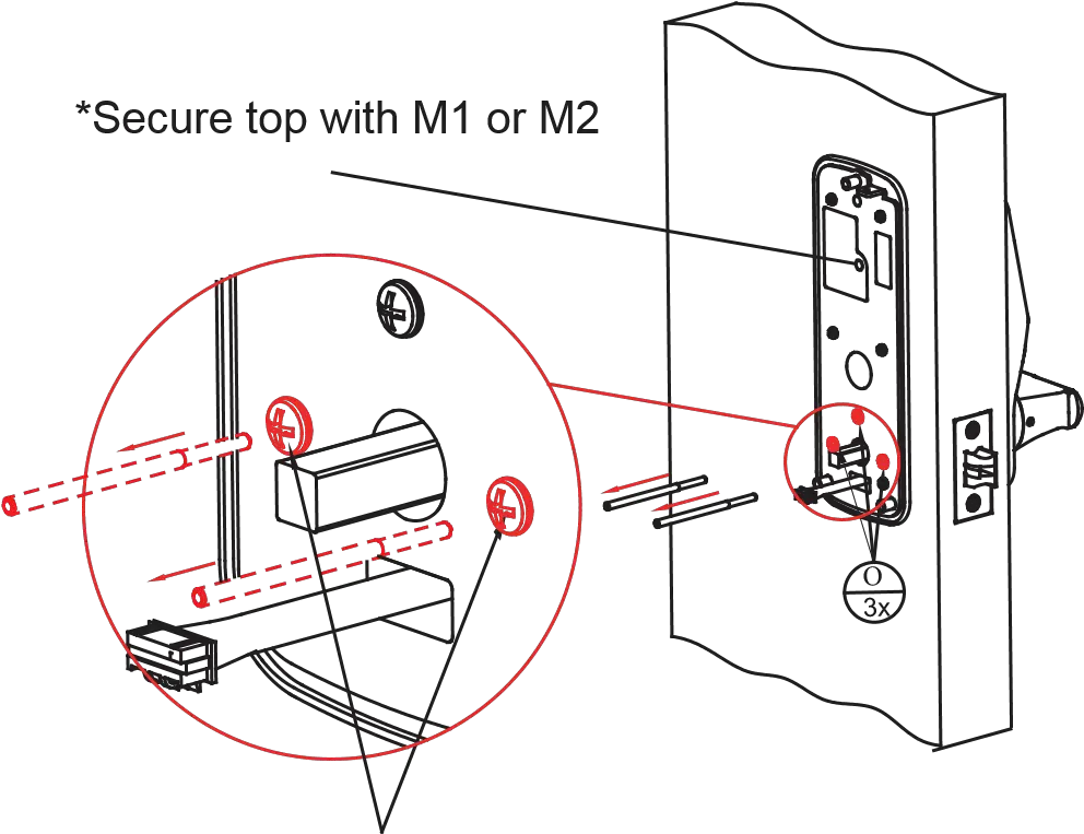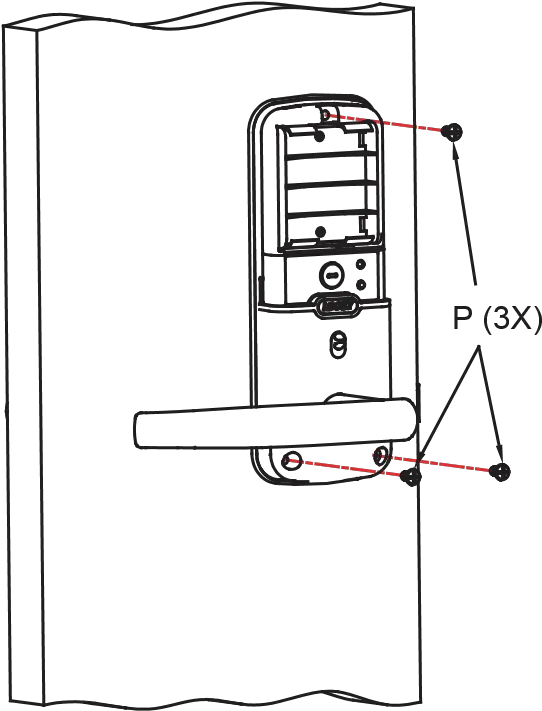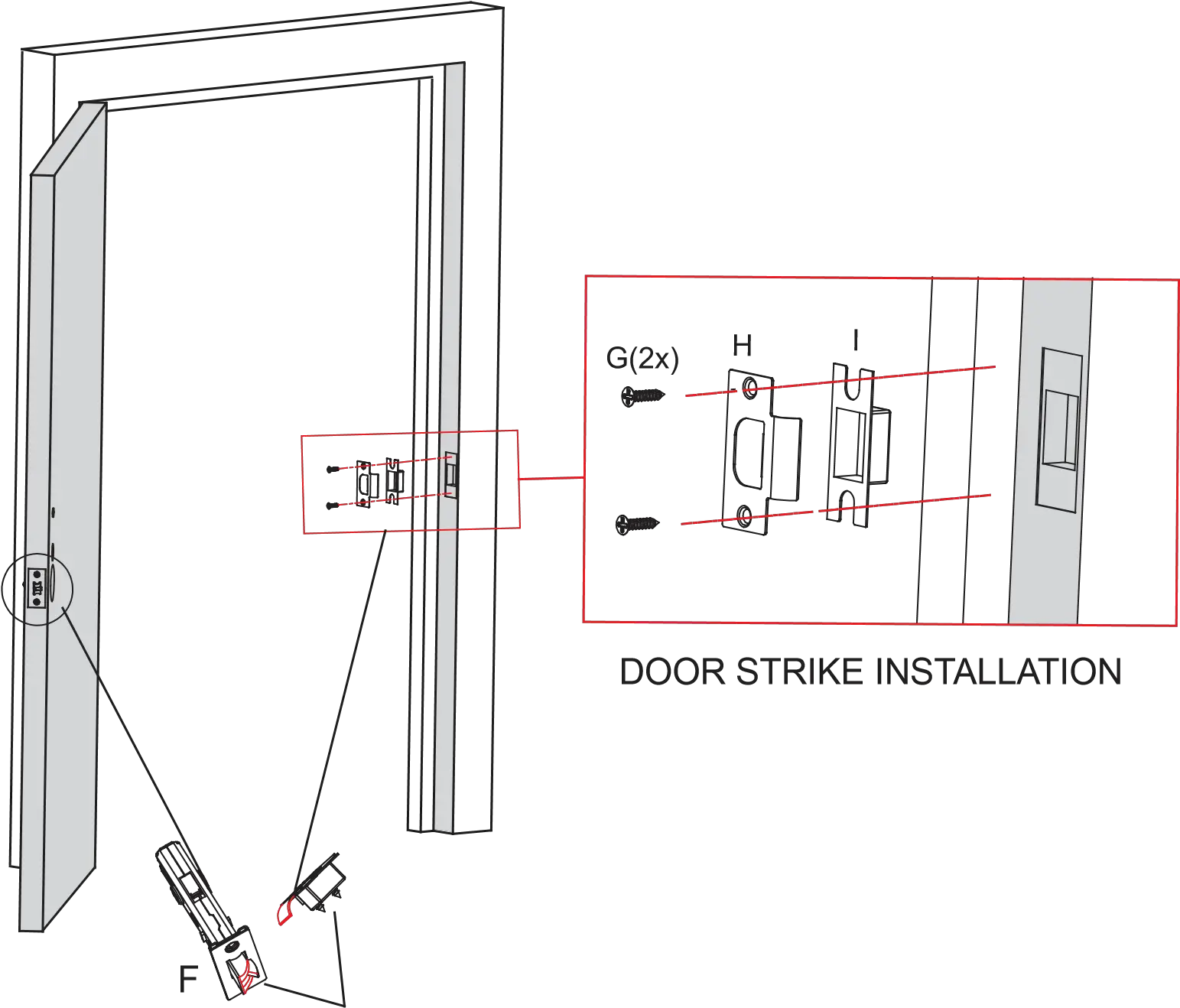 2.3 Secure lockset with provided screws, labelled G (Step 2.1) as shown.