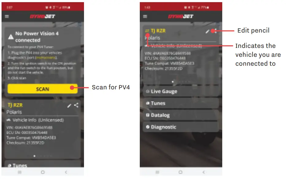 - Open the Dynojet Power Vision app.