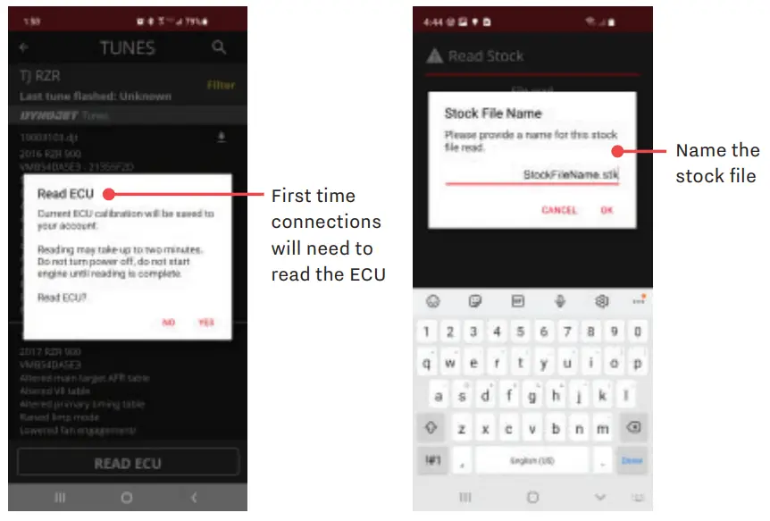 Note: The fi rst time you connect to a vehicle you will need to Read the ECU. Press Yes to continue.