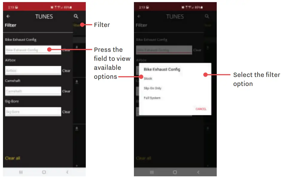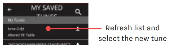 - Once you have selected your filters, slide the filter screen to the left. Select a tune file from the filtered list.