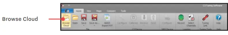 - From the Home ribbon, click Browse Cloud. Log in using your Dynojet account login information.