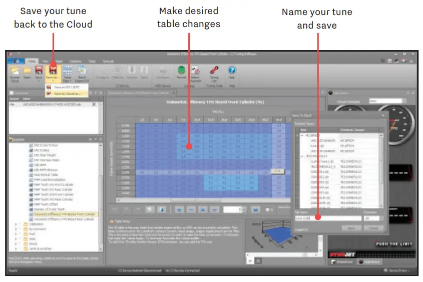 Use Dynojet’s Power Core software to edit the ECU tables to improve your riding experience. When you are finished editing, save the tune to the Cloud and use the Dynojet Power Vision 4 App to flash your tune to the vehicle.