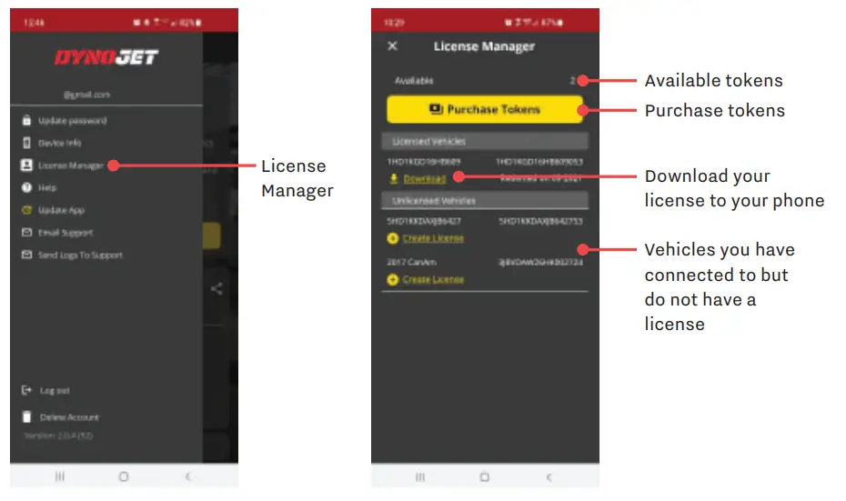 View available tokens, redeem and purchase tokens for tune licenses, and download a license to store on your phone for use offline. Your Power Vision 4 comes with one available Tune License. Tune Licenses are transferable.