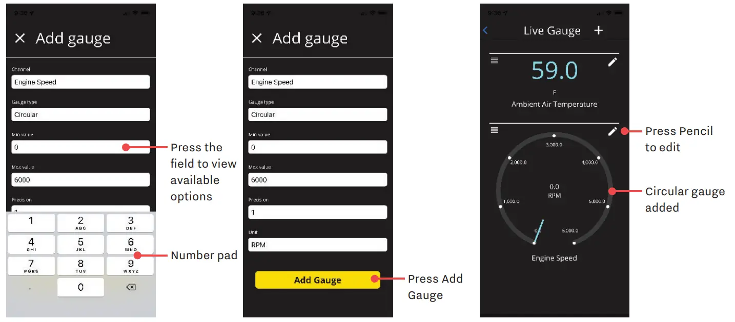 Your Power Vision 4 allows you to configure digital and circular gauges for real time monitoring. The Power Vision must be connected to the vehicle to view live gauges.