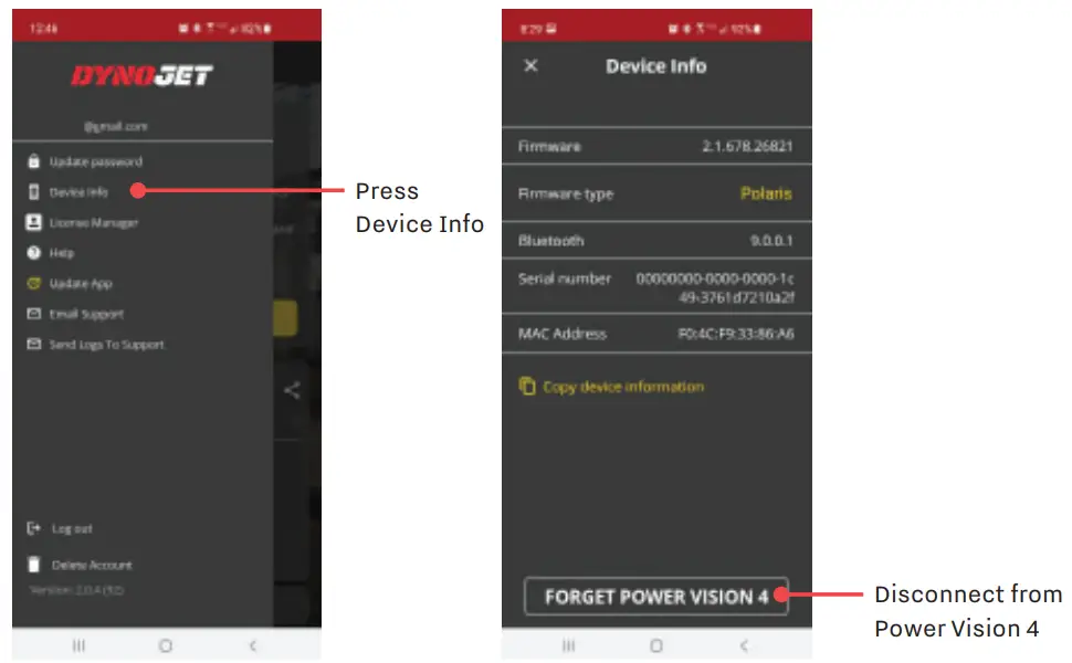 - Have your phone “forget” the Power Vision 4.