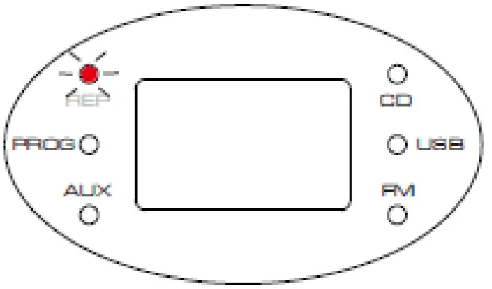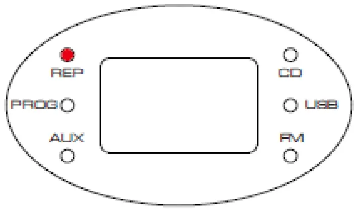 - In CD mode, press the “REP” button (3) to cycle through the options of repeat current track, the REP indicator blinks.
