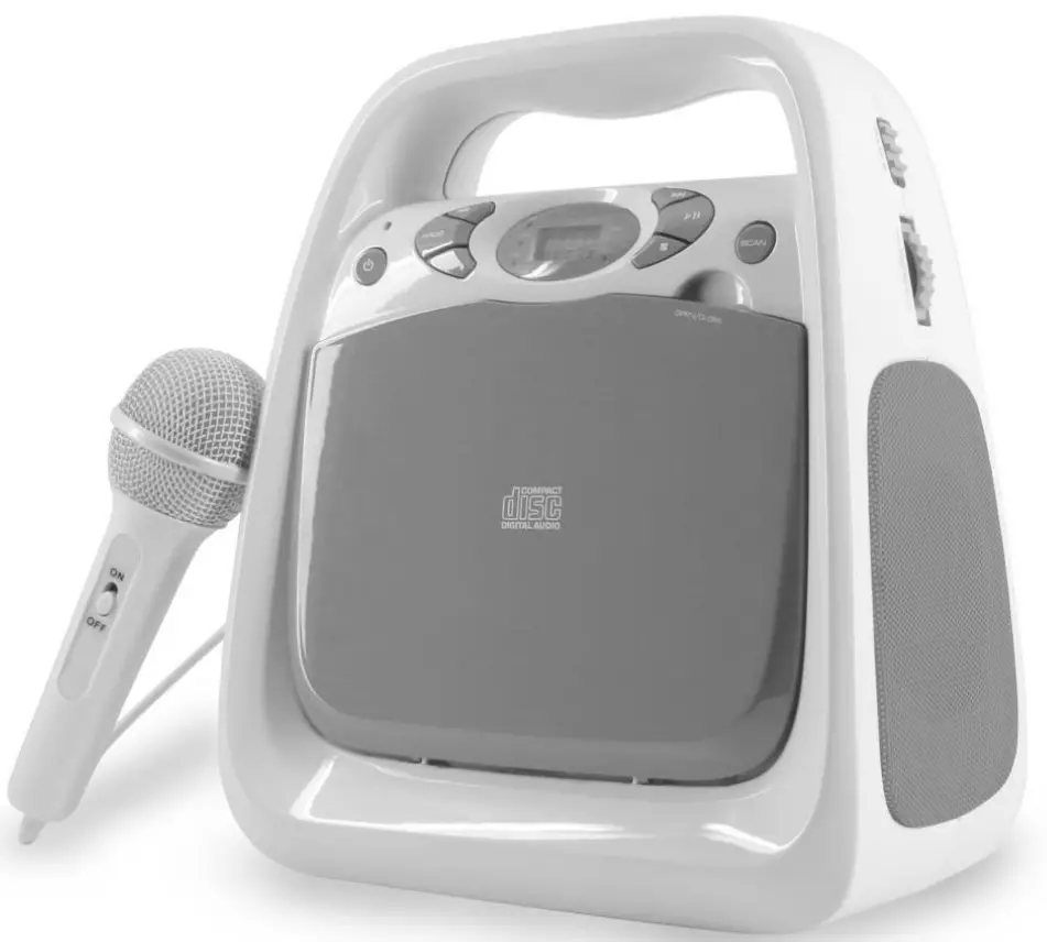 There is a “MIC” input jack (17) and included microphone that allow you to sing along with sound of the available sources .
