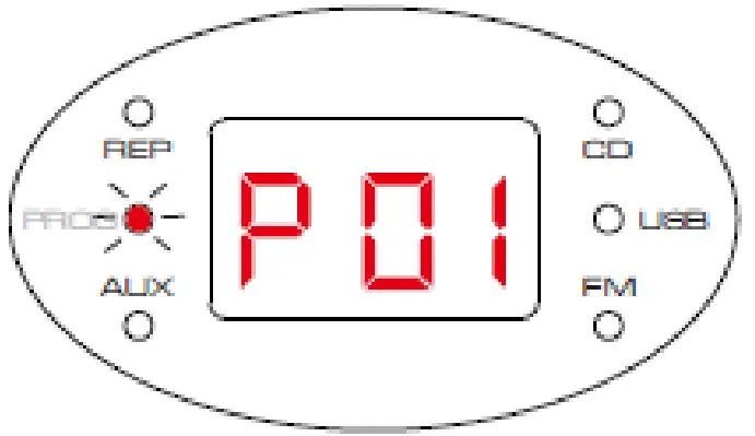 - Display showing [P01] and “PROG” indicator blinks.