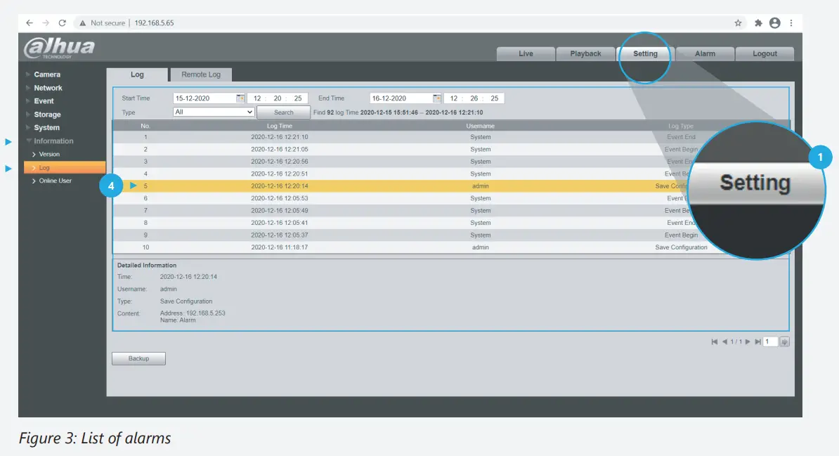, here you can check recordings that have been saved and new settings for the alarm. You can check the alarms by searching “Events” by time period. Click each recording and you will find the type of Smart Motion Detection and more information.