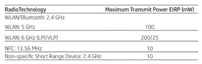 Radiofrequency bands and maximum power levels (select products only)