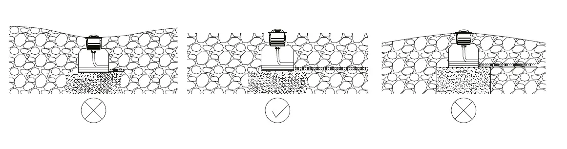 - Install the sleeves on the ground, the top side should be on the same level as the ground surface, cable needs to go through the sleeve.