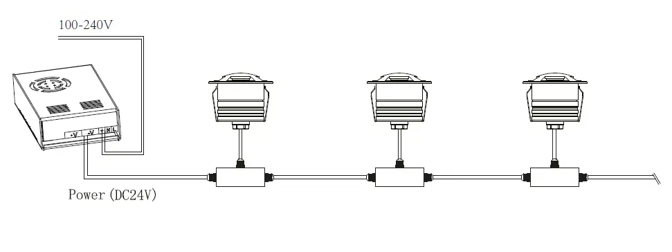 Low voltage single color fitting:use an external power supply,the input voltage of the power supply must be consistent with the requested input voltage of the fitting,as the fitting is a constant voltage input type. The power consumption of the power supply must be decided by the installer according to the requirements of the site.