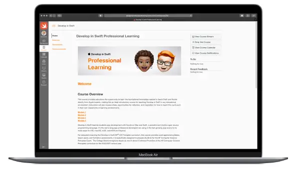 The Develop in Swift Explorations and AP® CS Principles course is available through Canvas by Instructure. Participants will learn the foundational knowledge they need to teach Swift and Xcode directly from Apple education experts, making this the ideal introductory course for teaching Develop in Swift in any educational environment.