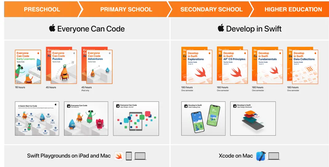 Whether students are beginning coders or are ready to build their first apps, Apple has programs to support teaching and learning with Swift, the same programming language used by professional developers to build some of the world’s most powerful apps. Everyone Can Code introduces students to the world of coding and app design through interactive puzzles, playful characters, and activities for both in and out of the classroom using the Swift Playgrounds app. Develop in Swift provides students with practical experience designing and developing apps with Swift in Xcode to prepare them for college, career, and even industry-recognized certification in app development.