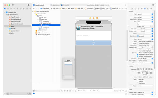 Building Apps. Students deepen their skills in Xcode and Interface Builder in guided projects to build apps from the ground up. They learn how to add user interface elements to a screen, connect those elements to their code, and respond to the events generated by user interaction. They use the incremental development process to build their apps one piece at a time, testing as they go. The culmination of the unit is a study app with flashcards and quiz modes.