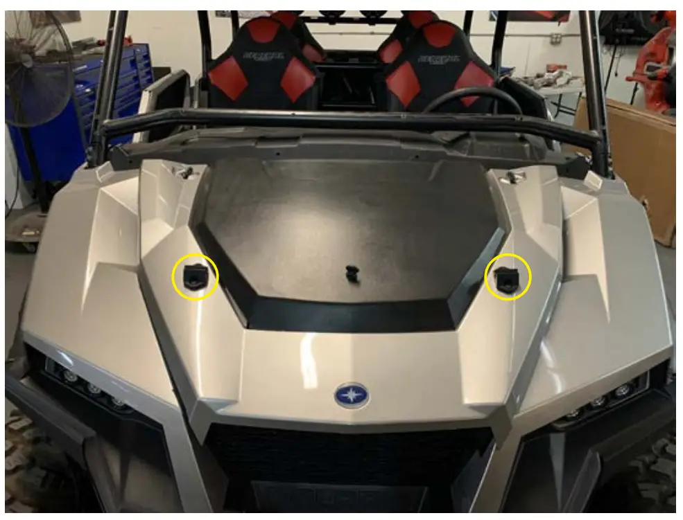 - Remove top two push pins from driver and passenger door opening