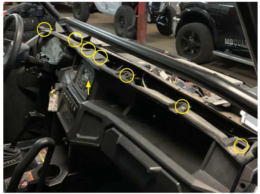 - Install six push pins on front of dash