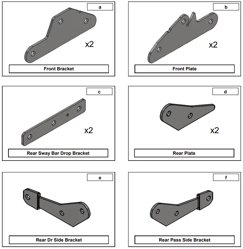 - Rear Pass Side Bracket x1 Rear Plate x2