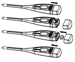 - Remove battery from the thermometer when not in operation for a long time.