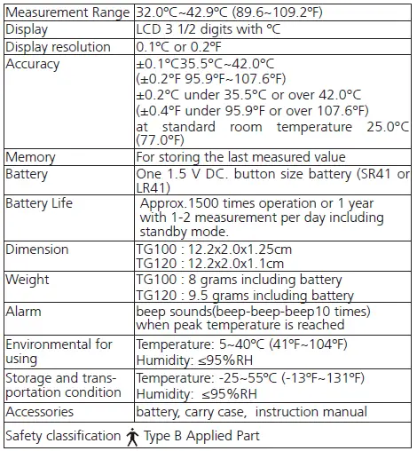 The quality of the thermometer has been verified and conforms to the provisions of the EC council directive 93/42/EEC(Medical Device Directive) Annex I essential requirements and applied harmonized standards. EN 12470-3: 2000 /A1: 2009 Clinical thermometers-Part 3: Performance of compact electrical thermometers (non-predictive and predictive) with maximum device.