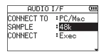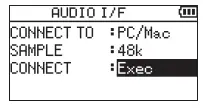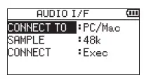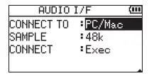 When the unit connects with the external device, the USB AUDIO I/F screen will open.