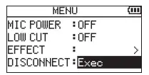 Options: 44.1k, 48k (default) - Select Exec at the CONNECT item.