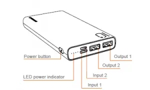 - Output and input ports can be found on the top of the power bank. The USB port is compatible for a variety of devices such as smartphones, tablets or other digital devices.