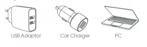 - Use the provided Micro USB cable in order to connect the power bank to an adapter. The power bank will enter into sleep mode when not in use for about 1 minute.