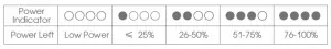 | 1 LED Light ON | 10%25% Power Remaining |