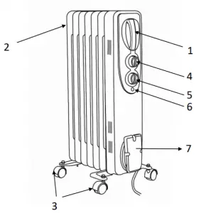Note : If the thermostat dial is set toward the maximum setting and the power control is set to off then the indicator light will stay illuminated. No heat will be emitted as the power to the heating elements is off.USING YOUR OIL FILLED RADIATORNote: this appliance will not operate if is not placed on a stable surface.