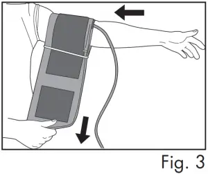 - The bottom edge of the cuff should be positioned approximately one inch above the elbow joint, Fig 5.
