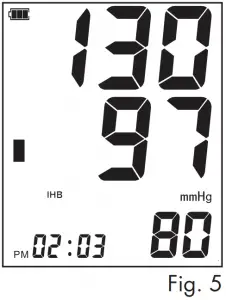- The Hypertension Indicator will indicate your reading range in the left side of the display, Fig 4. See page 16 for a chart interpreting the Hypertension Indicator results.