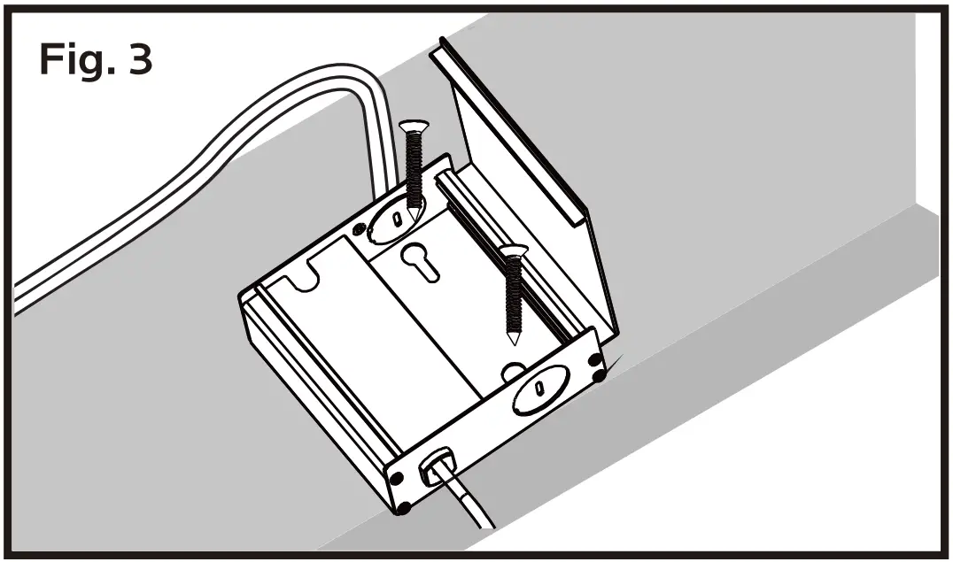 - Insert hardwire box through the mounting hole. (Fig. 3)